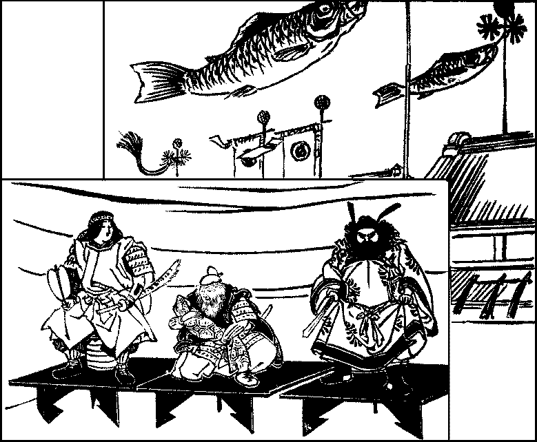 The fifth of May is the Feast of Flags, which is for boys what the Feast of Dolls is for girls. On this day little flags are set up in a room, together with figures of men famous in history for their strength and valour. Outdoors a gigantic carp made of paper or cloth is tied to the top of a high pole, where it flutters when it is{298} filled with wind; the carp is emblematic of strength as it can swim up a rapid current.