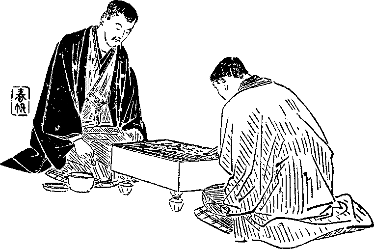 The Japanese indoor games we have above described are played mostly by children and young men and women, with the exception of the fox-ken, which is almost confined to convivial parties. The great serious games for grown-up people in the evenings, or in the daytime for that matter, are chess, go, and “flower-cards.”