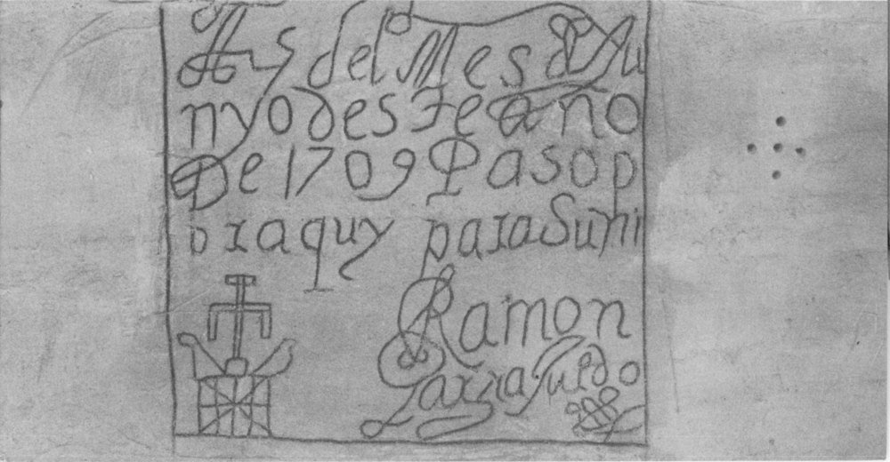 “By here passed the Ensign Don Joseph de Payba Basconzelos, the year he brought the cabildo of the realm at his own expense the 18th of February, of the year 1726.”
