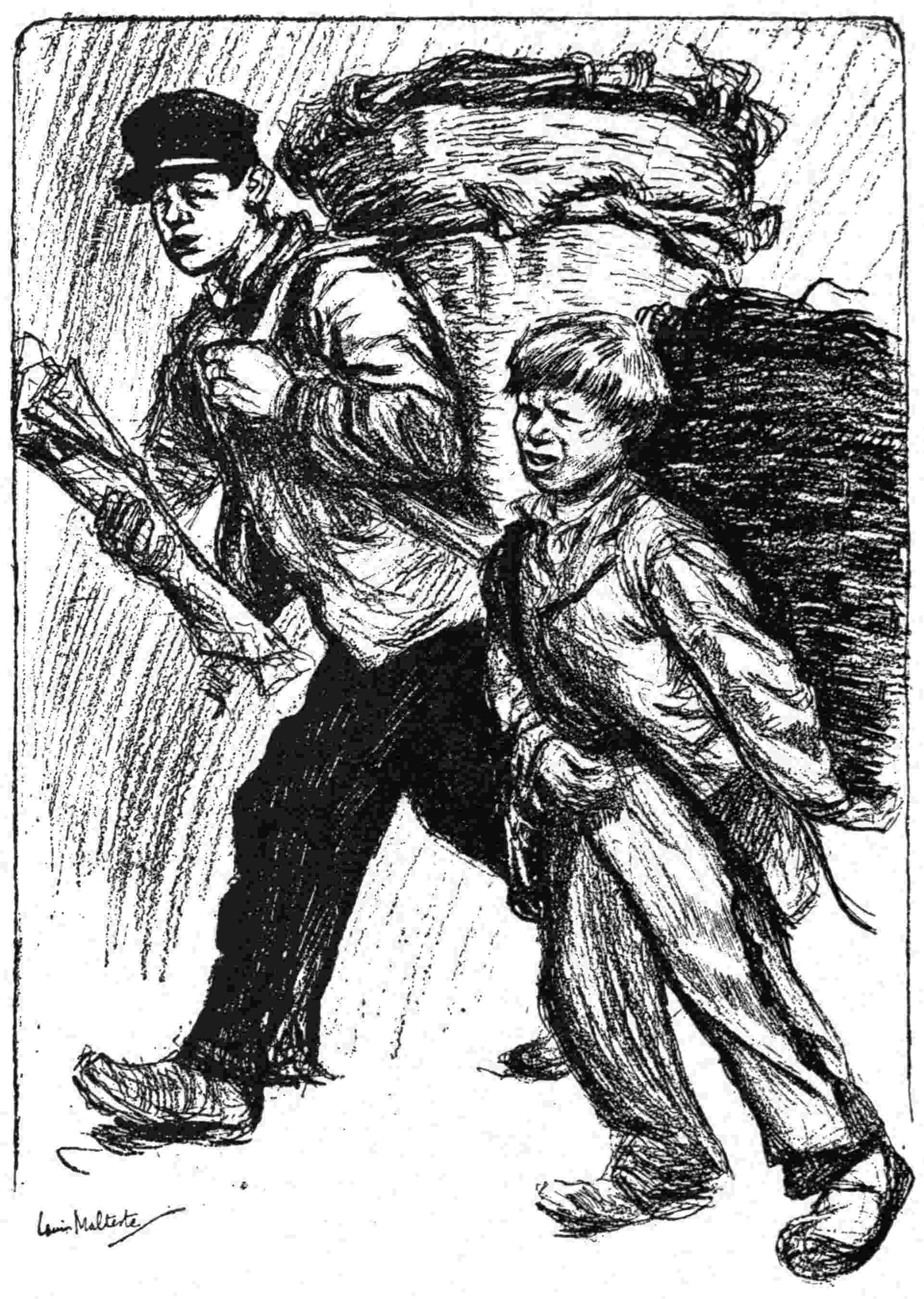 Steinlen’s field of labour has been in the so-called5 eccentric quarters of Paris—that is to say, on that soiled fringe of nondescript outlying districts of the Ville Lumière, which is separated from the city proper by the circlet of shabby-genteel exterior boulevards. Many of these suburbs were at one time peaceful, outlying villages; but they have now been swallowed, and more or less thoroughly digested, by the metropolis. Thus it comes that many of them consist of a queer mixture of humble rustic abodes jostling against towering blocks of tenement buildings, or busy factories for ever being pressed outwards by the expanding city.