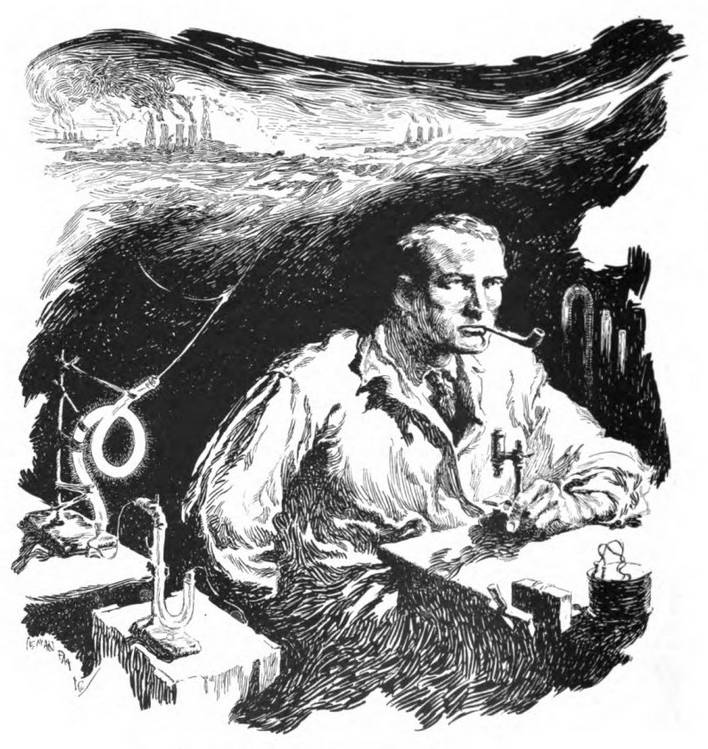 Evans, assured that his cherished laboratory was his once more, returned to it. The apparatus stood as he had left it, but covered with the dust of two long years. A flood of happy memories returned to him of days and nights spent in enthralling quests. He began eagerly to overhaul and test the apparatus in preparation for the renewed attack on the great problems which awaited his long-deferred experiments for their solution. For a few days he tinkered with the intricate assortment of instruments and devices, inspecting parts here, making minor repairs on them there, looking over old notes, and endeavoring to plan his campaign for renewed research. But as the hot July days wore on, his brain seemed to balk at the task; he realized that he was tired with the deep-seated fatigue which a day’s rest or a week’s rest will not cure. On the one hand, the din of a great naval action still echoed in his ears; on the other, he heard the call of the sea and the wild New England shore.