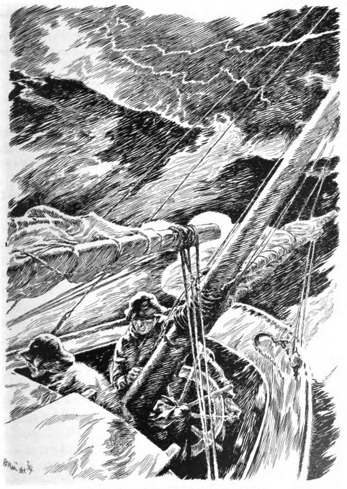 This was the situation when on a warm sunny morning in September one of America’s newest destroyers crossed Cape Cod Bay at a thirty-knot speed, and, gliding smoothly into Provincetown Harbor, dropped anchor. As the chain rattled down, a tall, well-built man in civilian clothes stood on the bridge beside the skipper and surveyed the harbor. Presently his eye rested on a small sailboat, ketch-rigged, of some thirty-six feet over-all length, making toward them about a quarter of a mile away.