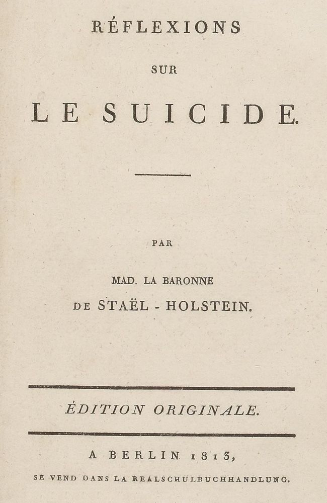 The Project Gutenberg eBook of Réflexions sur le suicide, by Germaine de Staël-Holstein