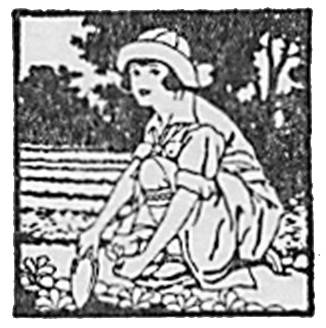 The iris, the phloxes, the pinks, lavender, portulacae and many other old-fashioned flowers were discussed, and for each one, Mrs. Tompkins had a valuable lesson to give Norma. As they went along the paths, Norma carrying a flat-bottomed basket, the hostess would dig up a small plant which had sprung up from a seed beside the older plant, and place it carefully in the basket. Thus by the time the three had covered the length of the paths in this section of the garden, Norma had almost a full basket of young slips and roots to take home for her own gardens. Then they walked over to a garden well enclosed with hedges, both low and high.