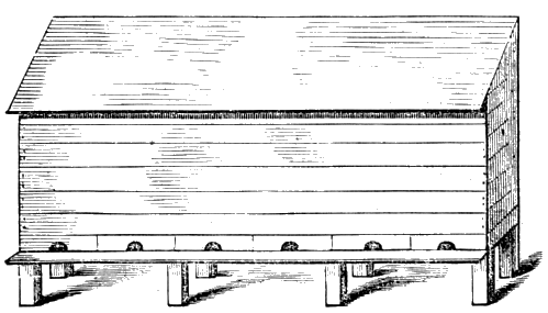 A very picturesque and efficient bee-shed is presented by Dr. Lardner, about twelve feet long and about nine feet high.