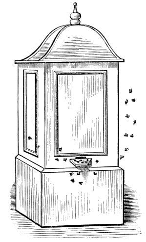 Richardson, who has offered many sensible suggestions on bee-culture, makes some very sensible remarks on this. But I do not agree with him in one of his opinions—that a south-westerly aspect -29- is best, or that a south-eastern aspect is likely to be prejudicial, from its tempting the bees to go out in too cold spring mornings. The early sun in early spring is not excessively seductive. Besides, bees are very good judges of temperature, as they are infallible prophets of weather, and may be safely left in this matter to the exercise of their own good sense. It is also worthy of notice, that the main work of bees is over by four o'clock in the afternoon, and the setting sun is therefore less important. They are early risers, and go early to bed. But his remaining observations on bee-sheds are thoroughly good:—
