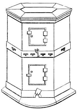 "The common wooden bee-houses, as usually constructed, open in front, and closed altogether behind, retaining the sun's heat as an oven, are objectionable. These are frequently the receptacles of dirt and vermin, and most inconvenient to operate in. It would be an improvement to make them deeper backwards; or with a falling front, moving on hinges, so that the hives can be recessed behind it, away from the influence of -22- weather. At the back should be folding doors, opening from top to bottom, allowing a good access to the hives. For greater convenience, it is best to have them only in a single row, with good head room. But a still more desirable plan is to board up the front of the house entirely, making oblong openings through for a passage to the bees, with an exterior alighting-board, a good deal slanted downwards (the bees preferring this to a flat surface). The hives are arranged immediately behind, upon a shelf, the further apart the better, as the bees occasionally mistake their own homes, and fall a sacrifice in consequence."