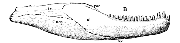 It is an interesting fact in the history of the vertebrates, as of all other groups of animals and plants, that the chief divisions arose early in geological history. Every known order of amphibians and reptiles, unless it be that including the blind-worms, was differentiated by the close of the Triassic period. The frogs are now known from the Jurassic. The mammals and birds also quite surely date their birth from the Triassic. And this early differentiation of the chief groups is doubtless due to the fact that the potentialities of diverse evolution are limited by specialization. It is apparently a law that evolution is irreversible, that it never goes from the special to the general, that an organism or an organ once extinct or functionally lost never reappears. And it is also a law in evolution that the parts in an organism tend toward reduction in number, with the fewer parts greatly specialized in function, just as the most perfect human machine is that which has the fewest parts, and each part most highly adapted to the special function it has to subserve. And these laws explain why it is that no highly specialized organism can be ancestral to others differing widely from it. The more radically distinct an organism is from its allies, the earlier it must have branched off from the genealogical tree. [Pg 4]