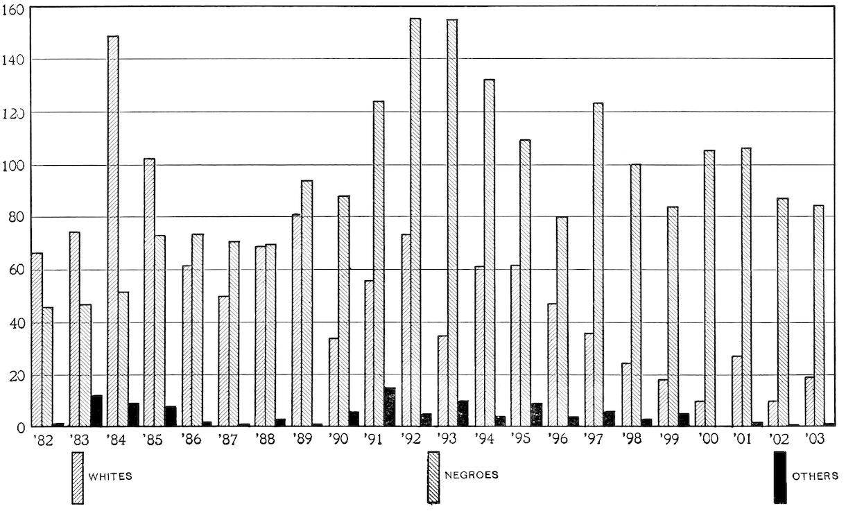| VIII. | Proportion lynched for various causes, 1882–1903, Whites and Others | 175 |