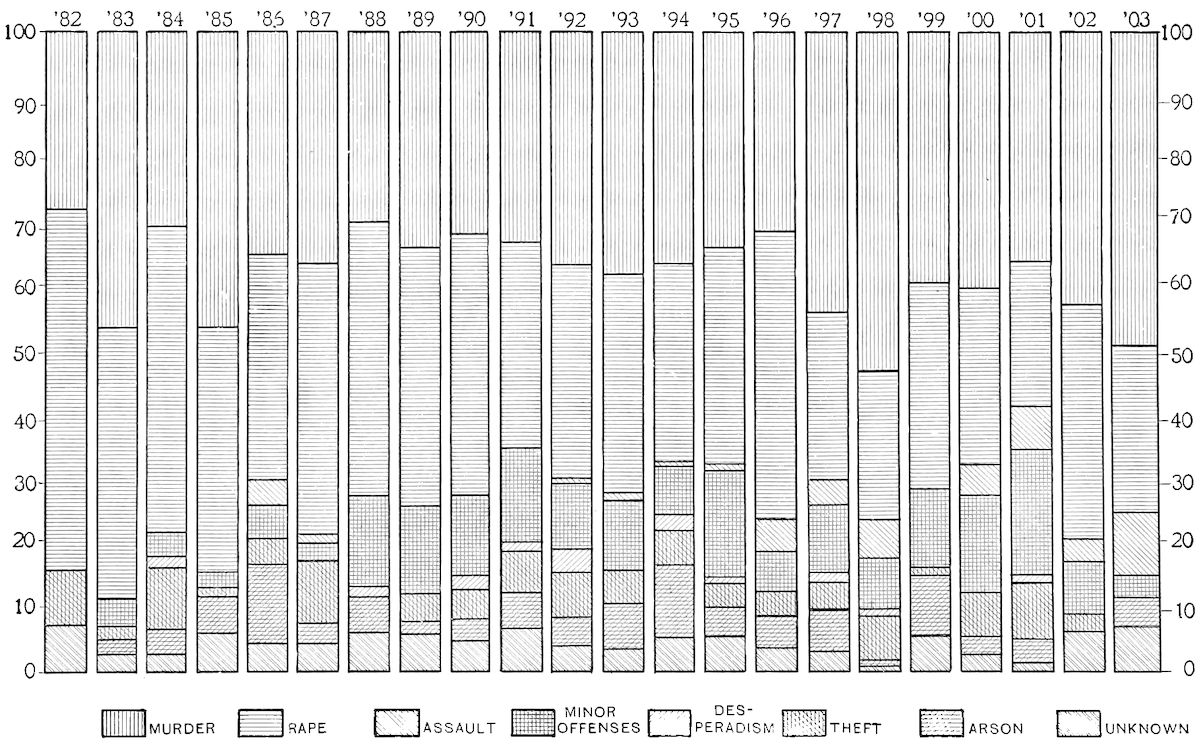 In general, it may be said that the practice of summarily punishing public offenders and suspected criminals is found in two distinct types of society: first, the frontier type where society is in a formative state and the civil regulations are not sufficiently established to insure the 2punishment of offenders; and second, the type of society which is found in older communities with well established civil regulations, the people of which are ordinarily law-abiding and conservative citizens. In this second type of society, recourse to lynch-law procedure may be had either in times of popular excitement and social disruption, or when there is a contrast in the population such as is to be seen in the South between the whites and the negroes, or against disreputable characters in the community for whose punishment under the law no tangible evidence can be adduced, or against persons guilty of committing some heinous offense which on account of its atrocity and fiendishness is particularly shocking to the community.