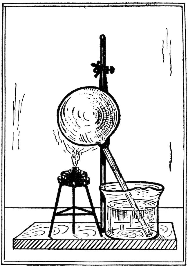 The following experiment illustrates the above statement. Place a few drops of water on a smooth surface, such as a table top or ordinary board, and over this a watch glass, containing a small quantity of ether. In order to hasten evaporation, blow a current of air across it, and it will be found that the glass will be frozen to the board. This is caused by the evaporation of the ether, which uses up heat.