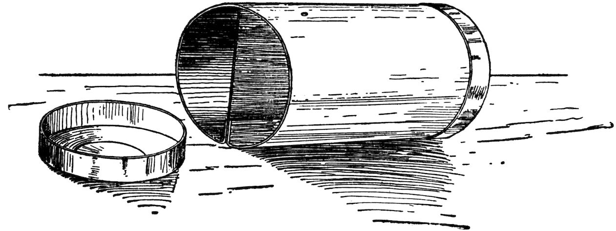 A tumbler is filled with water and a piece of paper placed over the top of it. The glass is then inverted, holding the hand over the paper so that none of the water will come out. On taking the hand away, although the glass of water is inverted, the contents do not leave the glass. (See Fig. 4.)