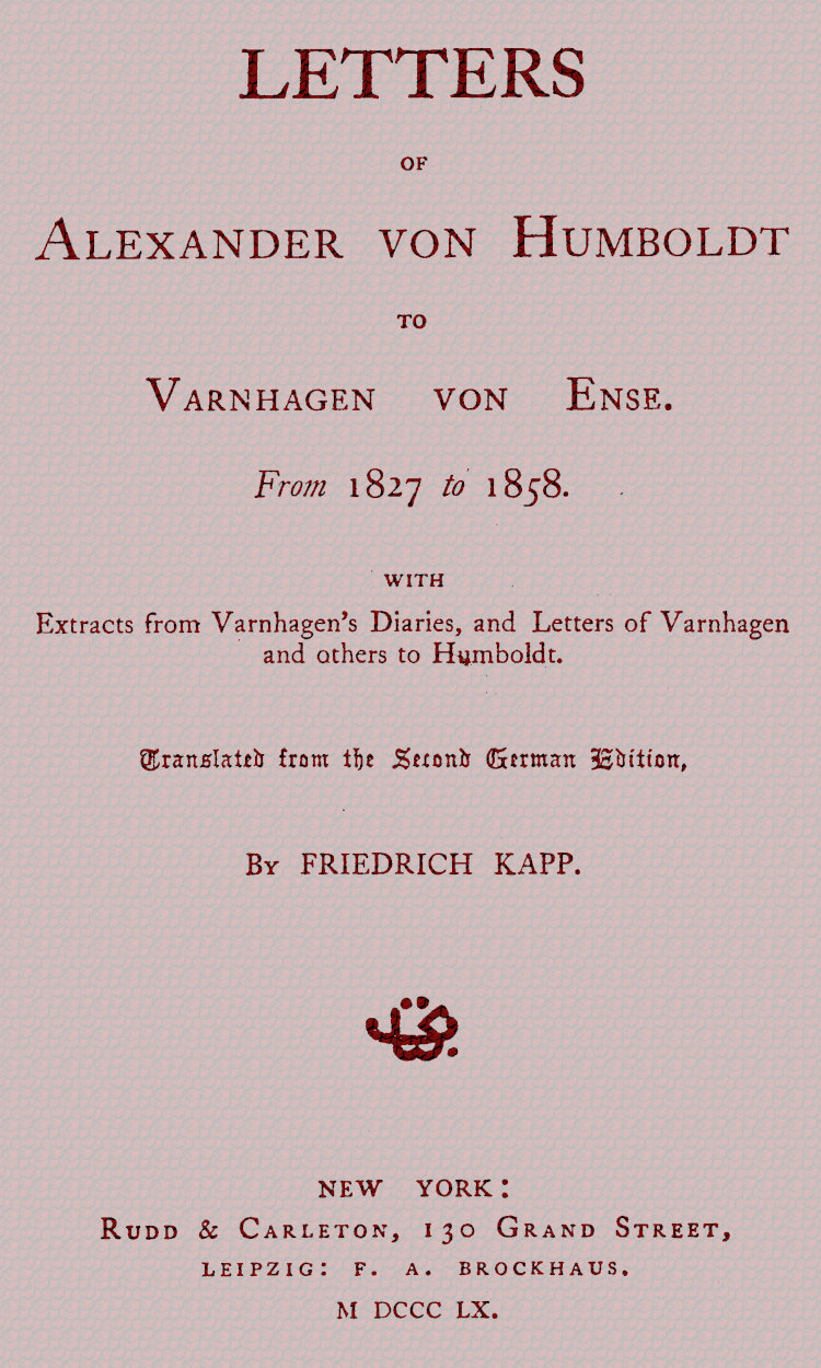 | 25. | Humboldt to the Princess von Pueckler, | 51 |