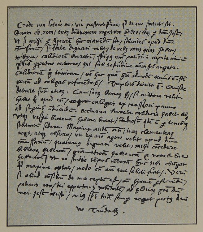 Reduced Facsimile of the only known letter of William Tindale.