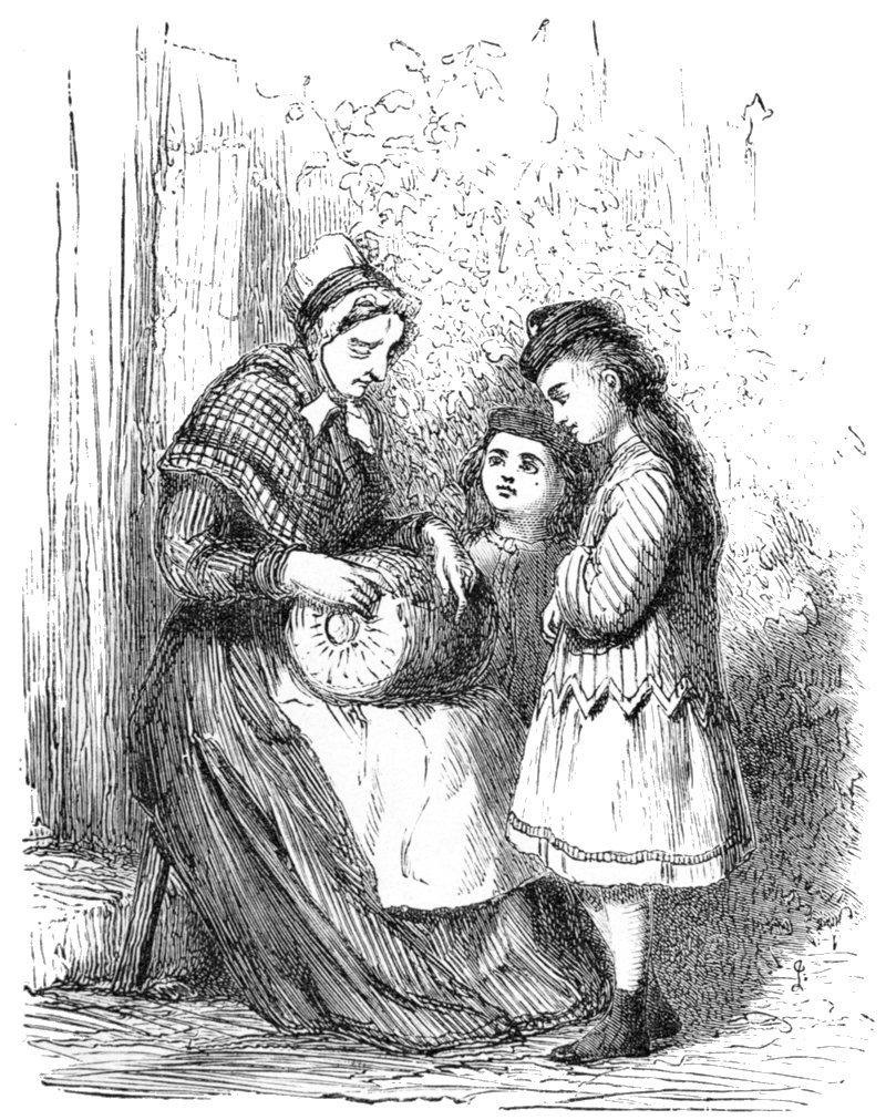 Their grandmamma spoke to an old woman who was sitting outside the cottage door, and said to her that she was glad to see her up and looking better; and the old woman replied that the warm weather had done her a great deal of good, and that she was very glad to see her and the little children.