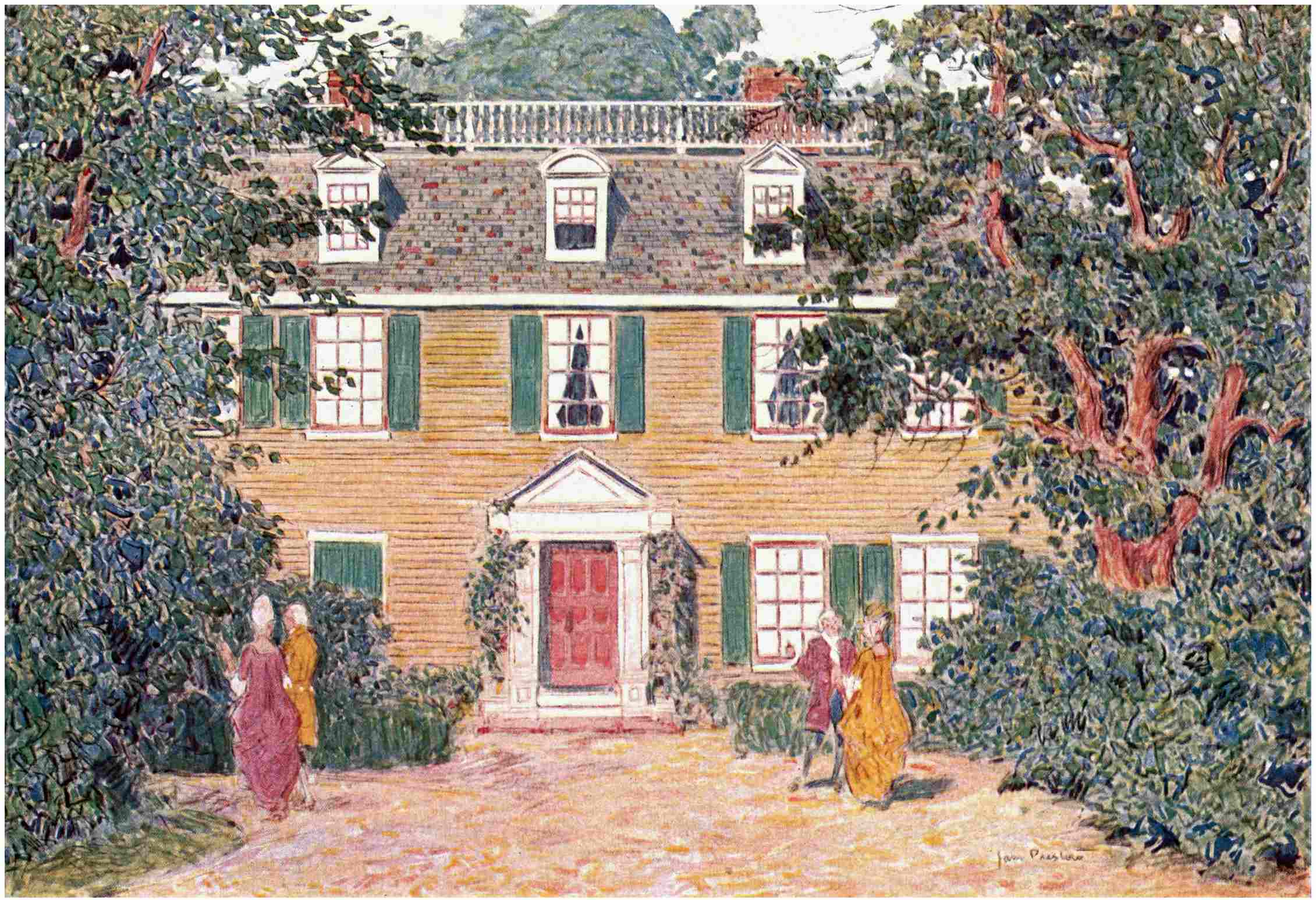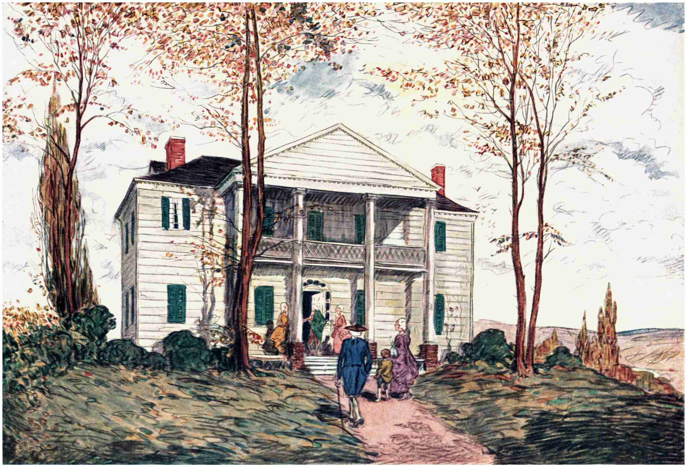 As I read in Mr. Hollister’s chapter on Mount Vernon of Washington’s long absence from the home he loved and of the eagerness with which he returned to it after the tumultuous years of the Revolutionary War, I was caught by the fancy that lovers of books have recently gone through a somewhat parallel experience. Dragged away by the Great War from the books they cared for, plunged into continual war reading, they now find, to their infinite relief, that they are getting home again—back to Mount Vernon, as it were. And it seems to me the change could not better be exemplified than in this charming, gentle book of Famous Colonial Houses.
