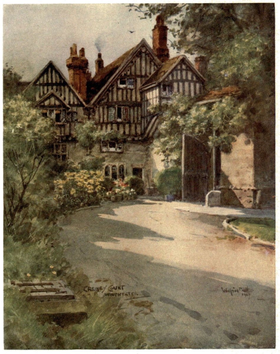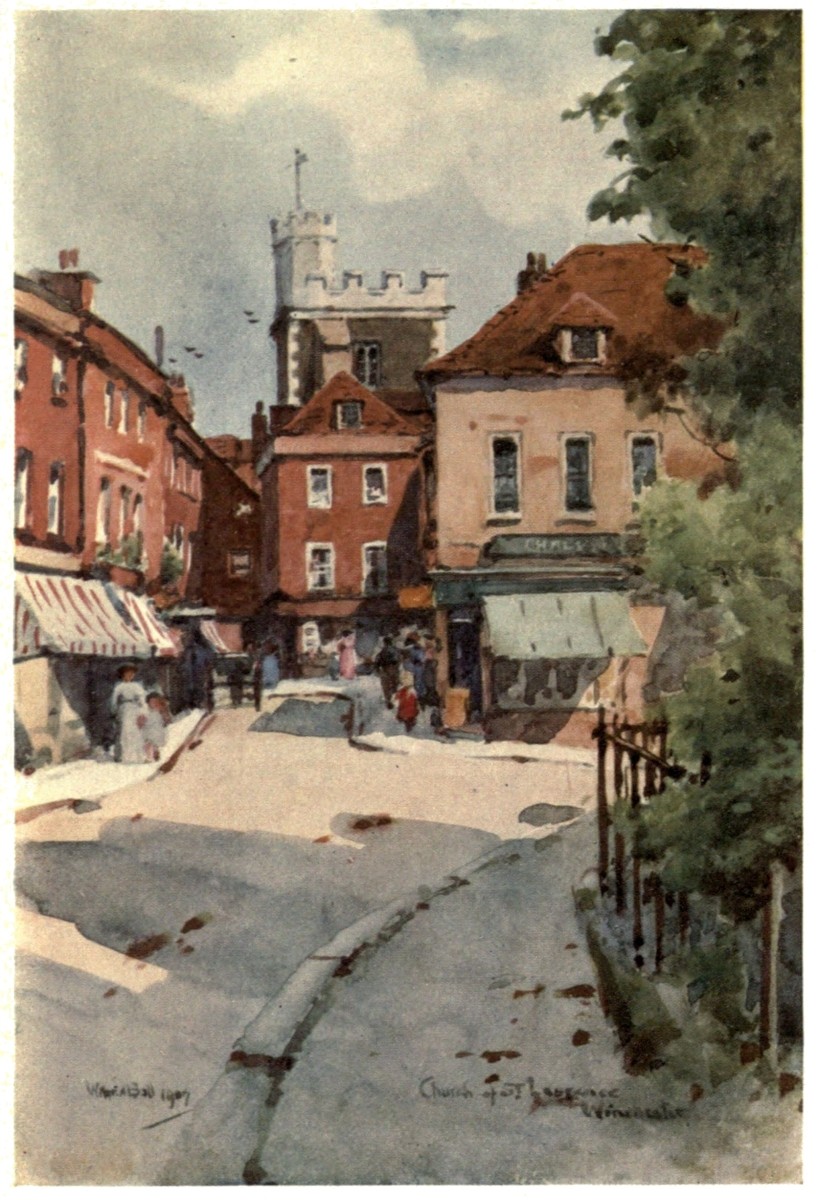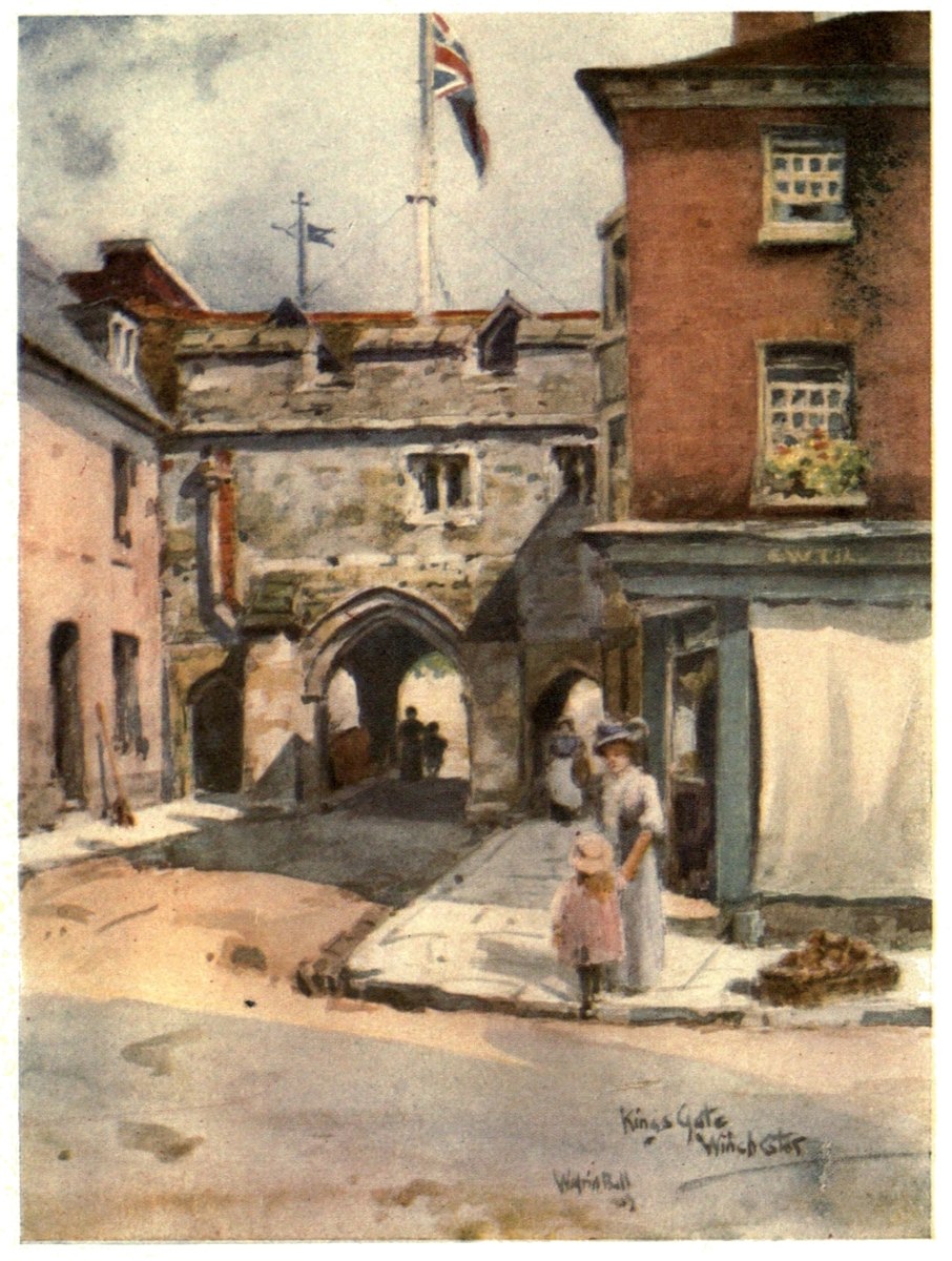 Here was the cradle of Saxon rule and Saxon civilization; here also the cradle of national historical record. Here Saxon Alfred ruled and prayed and wrought; here{5} Danish Cnut took the golden crown from his brow and laid it in token of humility upon the Holy Altar; here Norman William wore his crown yearly at Easter-tide; here Curfew first was pealed, and here ever since it has continued to peal; here Rufus was buried, “many looking on and few grieving”; here Henry I. ruled and earned the title of the ‘Lion of Justice’; here Matilda fought with Stephen in the dark days of civil warfare; here John received the papal absolution, having sunk the English crown to a lower depth than any other sovereign either would or could have done; here Henry III. was born, and here he held wild revel; here later on was founded the great college of William of Wykeham, whose motto—“Manners makyth man”—has served as an inspiration for generations of public school boys for over 500 years; here Henry VIII. welcomed and fêted the puissant Emperor and second Charlemagne, Charles V.; here his daughter Mary was married to a Spanish prince; here James I. kept his Court, and here Raleigh received his shameful condemnation and sentence; here, with alternate fortune, Cavalier and Roundhead strove together, till Cromwell himself captured its citadel and razed its fortifications to the ground; here Charles II. repeatedly kept his Court; here he presented the Corporation with his own portrait, and it may even be, left the citizens to pay for the gift—for the Merry Monarch was often forgetful, and always short of money; here was perpetrated the most infamous, perhaps, of all the crimes of the terrible Bloody Assize, the judicial{6} murder of Dame Alice Lisle for an act of natural humanity; here died and here was laid to rest that most charming and natural of women novelists, the bright and vivacious Jane Austen.