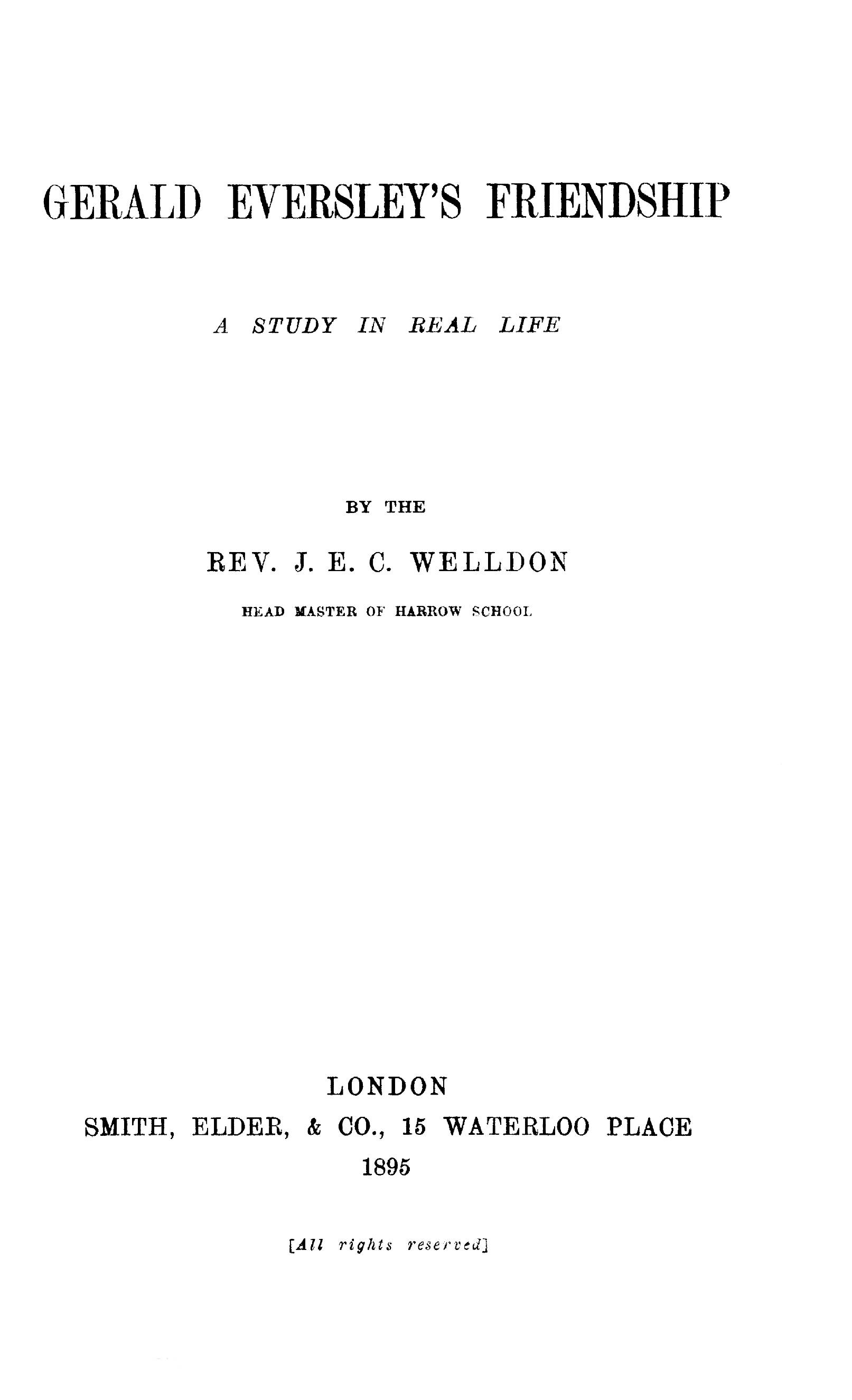 The Project Gutenberg eBook of Gerald Eversley's Friendship, by James Edward Cowell Welldon