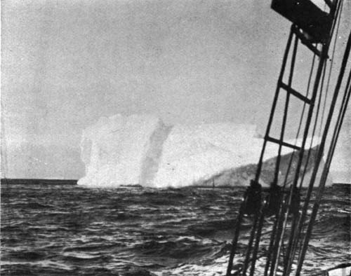[122]After we left Cape York, the midnight sun was with us no longer, and we had darkness for the first time in over a month. It indeed seemed strange to see the icebergs again bathed in a sunset flush, gleaming in the distance like old Greek temples of delicate pink marble. As twilight shaded into darkness and the stars blossomed once more in the heavens, we sat long on the quarter deck drinking in the infinite beauty of the night, silent save for the murmur of the water beneath the prow.