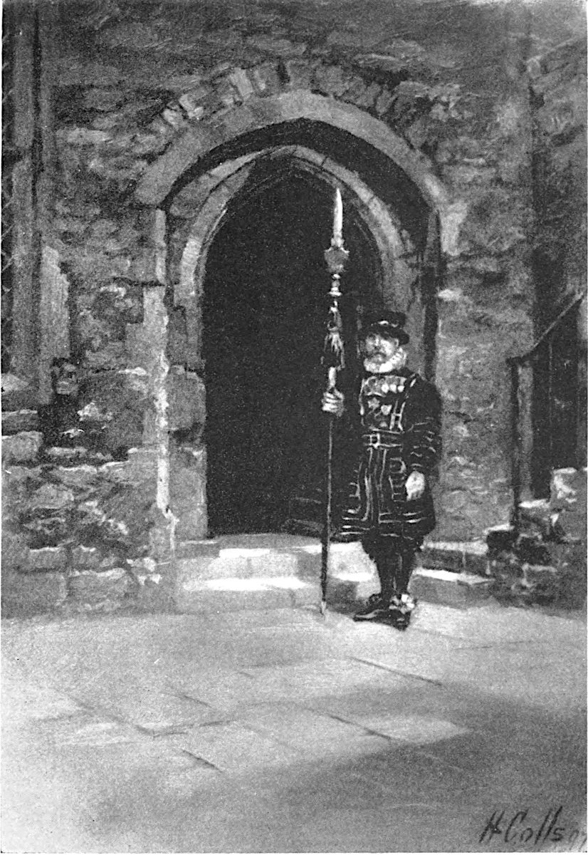 Owing to the plague then raging in London, the customary procession at the coronation was omitted, although the King rode in state from the Tower to Westminster, preparatory to the opening of his first Parliament on 15th of March 1605, as the Londoners had made their welcome for him ready. In Mr Sidney Lee’s “Life of Shakespeare,” he states that Shakespeare, with eight other players of the King’s company of actors, “walked from the Tower of London to Westminster in the procession which accompanied the King in his formal entry into London. Each actor received four and a half yards of scarlet cloth to wear as a cloak on the occasion, and in the document authorising the grant, Shakespeare’s name stands first on the list.” This is the only time that we can positively know that Shakespeare was ever at the Tower; but his frequent introduction of the fortress into his historical dramas makes it certain that he must often have visited a place so full of dramatic episodes and historical memories.[2]