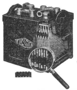 The new Vesta in handsome hard rubber case, showing how plates are separated by isolators.