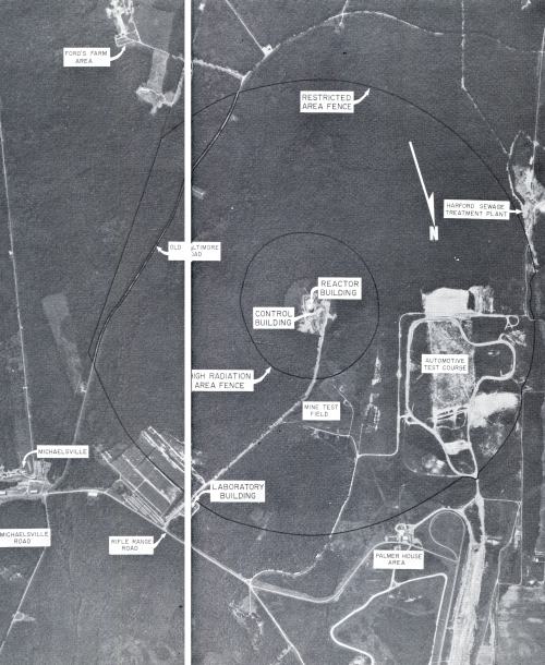 The APRF is located on the military reservation of Aberdeen Proving Ground (APG), in southeastern Harford County, Maryland. The Reactor Building is at the center of the facility.