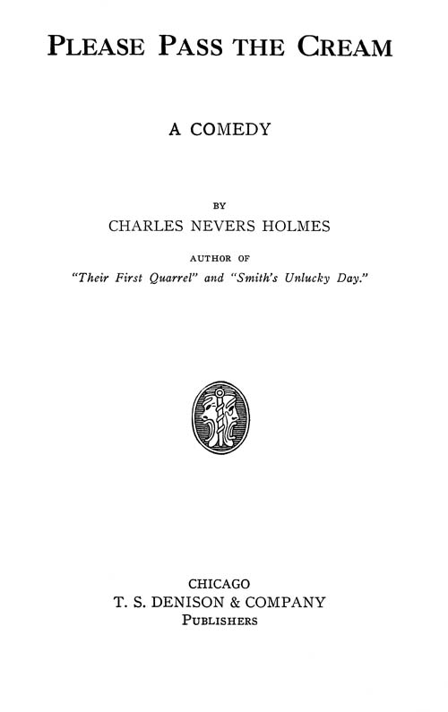 Mr. C. (rising quickly and going over to the telephone). You needn’t take my word for it. We’ll have some one else’s opinion. (Takes down the receiver.) Hello! Give me Main 203. (Turns to Mrs. C.) I’m going to talk with Joe[Pg 10] Williams. He’s head of the Wholesale Milk Company. (Speaking into ’phone.) Hello! Is this Joe? I’m John Clark. You see, Joe, my wife and I have had a slight dispute. She declares up and down that the milk we are using on our breakfast table is cream, and not milk at all. I say that it’s milk—no matter whether it’s in a cream-pitcher or not. She says that as long as it’s in a cream-pitcher it’s cream and not milk. Now, Joe, am I right? It’s milk, because I have drunk some of it and I remember that Mrs. Clark told me this morning the milkman had forgotten to leave the cream. (Pauses a moment.) What’s that? You think I am right, but you are going to ask your wife and will call me up soon? Thank you, Joe. (He replaces the receiver and returns to his chair.)