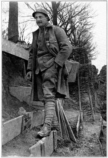 [C] The banquette is about eighteen inches above the pathway at the bottom of the trench. The men stand here when firing or when on guard.—Translators’ Note.
