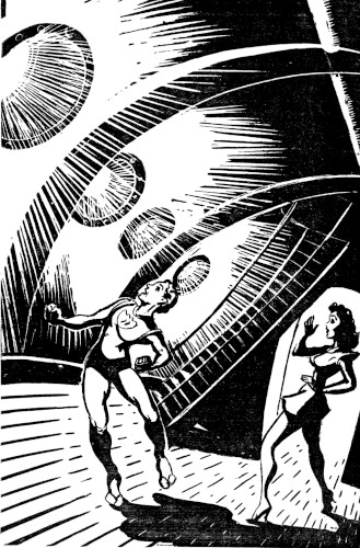 The leering face of a Martian looked up at him, and smiled sneeringly. Lindsay snapped his cutting torch and thrust the white-hot flame in the Martian's eye, and the face distorted and became Jenna. She lifted a hand and pushed the flame away. It went, cutting the hard metal around her face. Characters were burned in her forehead, and he read them without understanding. Tiny hands came out through the cut in the metal and wiped Jenna's face from the top of the fuse. They took the white-hot flame in their hands and directed it.