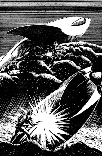 He leaped up and ran to the driving panel. Harshly he threw the autopilot out of gear and took the controls himself. The ship took off raggedly and hissed through the upper air, racing.