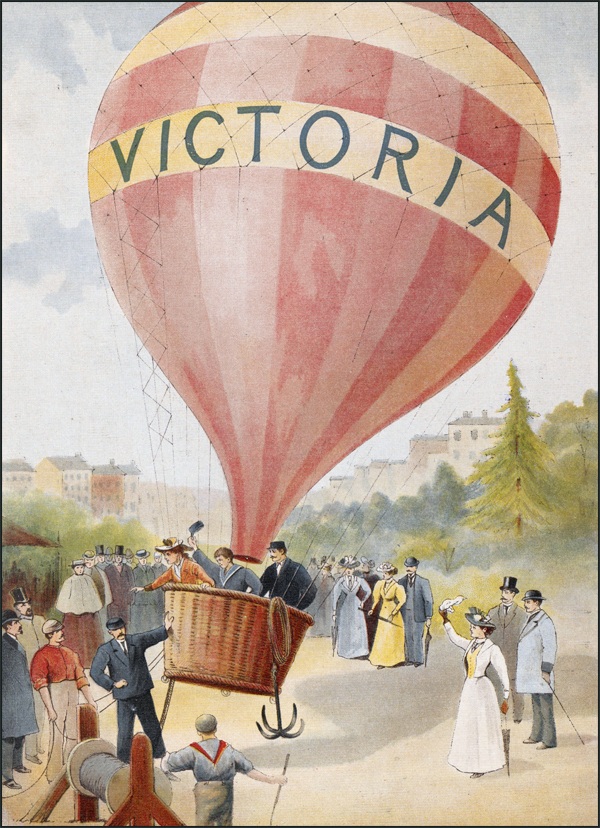 —En ballon!... Maman n’avait pas voulu nous accompagner, et nous étions seuls avec papa, pour monter dans la nacelle. Maman nous saluait avec son mouchoir en guise de drapeau. Il y avait beaucoup de monde réuni pour voir notre ascension. L’aérostat était superbe, tout rouge avec une grande bande jaune sur laquelle on lisait: Victoria! c’est-à-dire: Victoire! Je me souviens de tous ces détails comme si c’était la vérité; et au moment où papa criait: «Lâchez tout» et où nous allions nous élever dans les airs, j’ai ouvert les yeux dans mon petit lit.