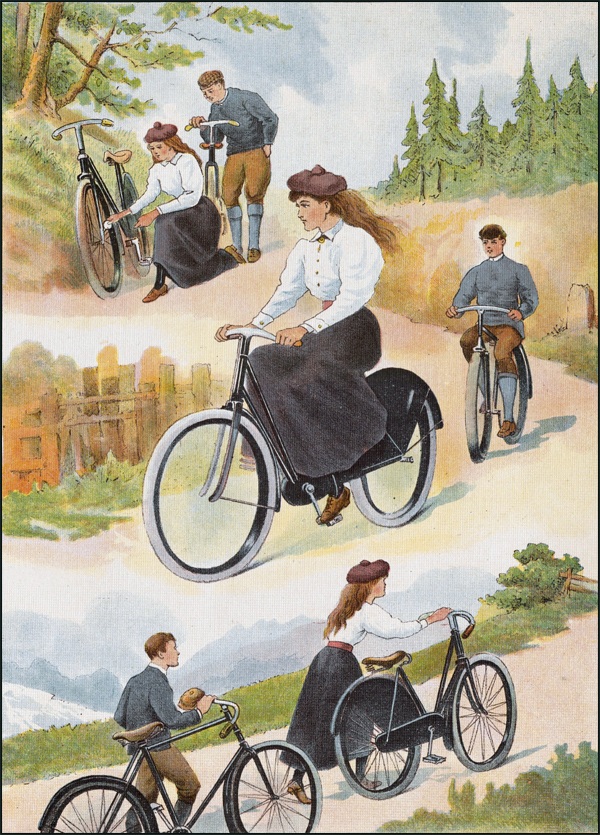—C’est bien drôle répliqua Hélène, car moi aussi, j’ai été poursuivie de l’idée de notre voyage jusque dans mon sommeil. J’étais persuadée que nous faisions tous deux la route à bicyclette. Il nous arrivait toutes sortes de mésaventures. Nous étions souvent obligés de nous arrêter pour graisser nos machines ou pour regonfler nos pneus. Dans les descentes, nous pédalions à toute vitesse. C’était toujours moi qui ouvrais la marche.