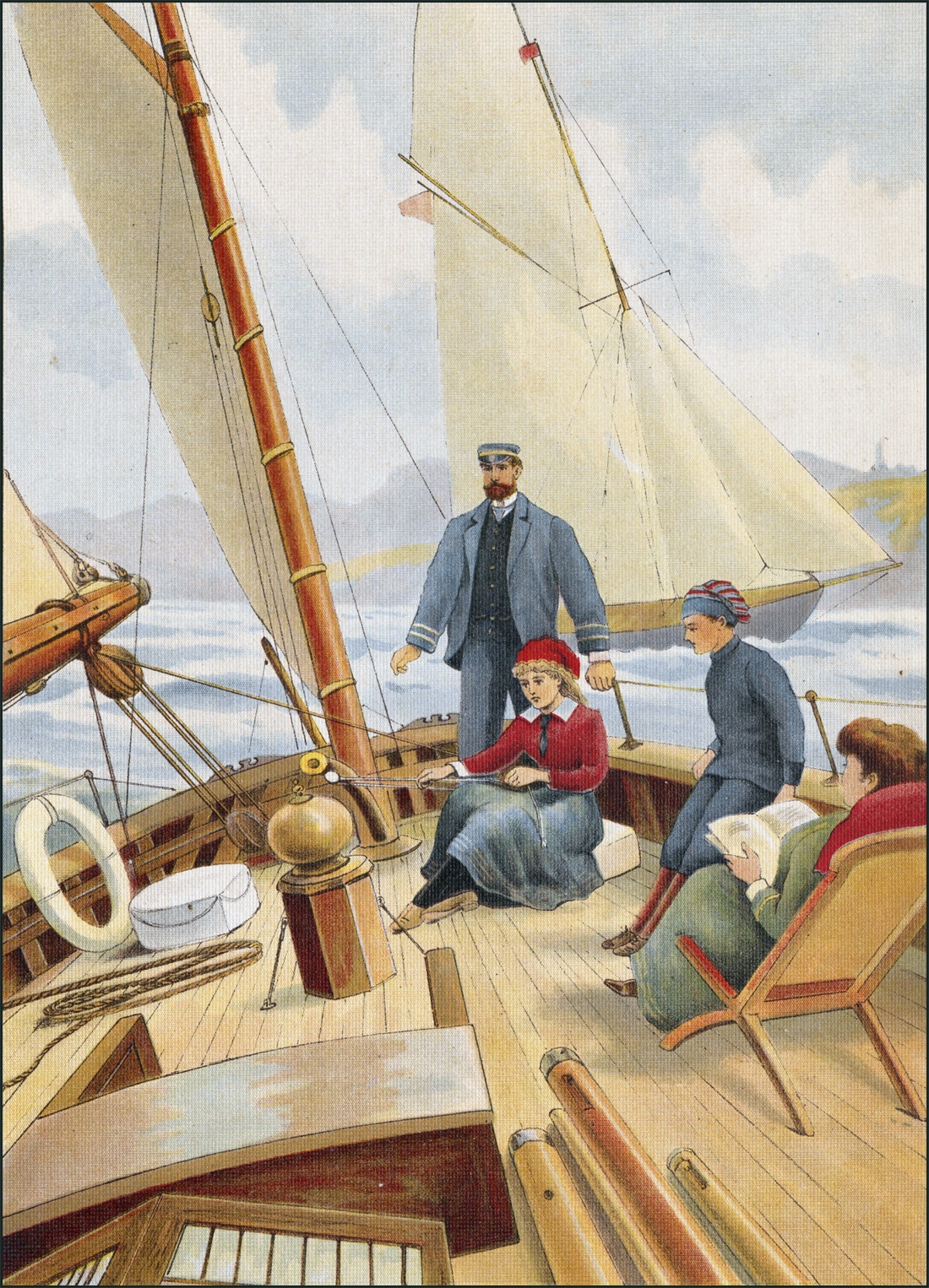Le plus intéressant fut la visite d’un bâtiment faisant escale dans le port où se trouvaient Jacques et Hélène. Leur tante connaissait le capitaine. Il leur fit voir le navire en détail: la cuisine, la salle à manger du bord, le salon avec ses sophas et ses glaces; puis les cabines aux lits superposés.