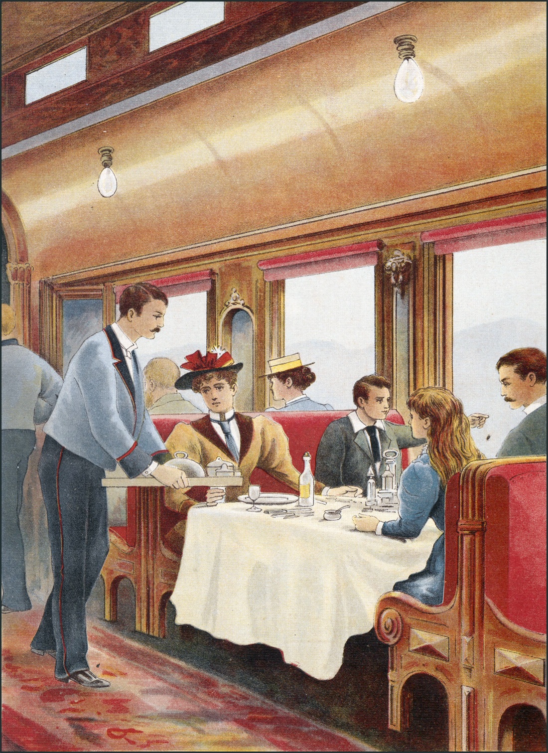 D’ailleurs, tout ce voyage était plein de nouveautés et d’agréments. Ç’avait été une telle joie de passer une nuit en chemin de fer, et surtout de déjeuner le lendemain dans le wagon-bar, si confortable! Des fenêtres bien larges permettaient d’y admirer le paysage tout en mangeant et roulant.