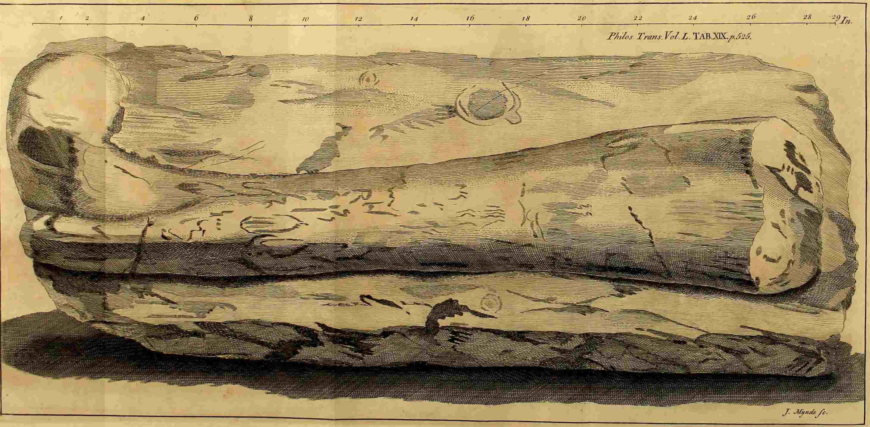 | LXVIII. | An Account of the fossile Thigh-bone of a large Animal, dug up at Stonesfield, near Woodstock, in Oxfordshire. In a Letter to Mr. Peter Collinson, F.R.S. from Mr. Joshua Platt. | p. 524. |