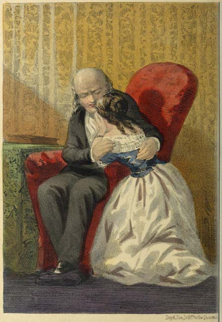 She looked into his face with eyes beaming with love and gratitude; but the joyful, sparkling expression soon faded away, for she saw that he was sadder than usual; and with the quick sympathy and natural grace of childhood she sat down quietly on the rug, and taking the stately head of the hound on her lap, pensively stroked his long, shaggy coat. Presently she ventured to break the silence in her gentle way—“I am so glad you are come back, sir; I have missed you so!”