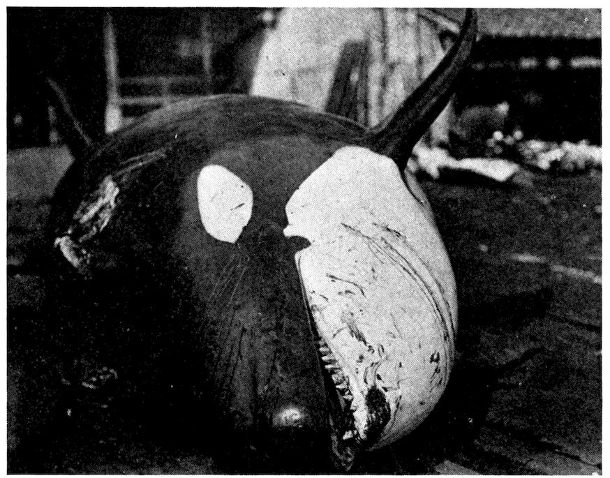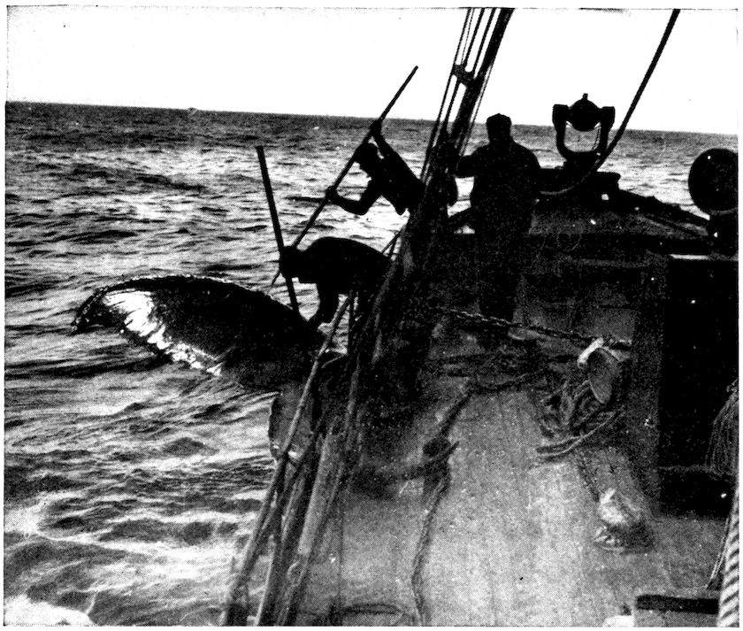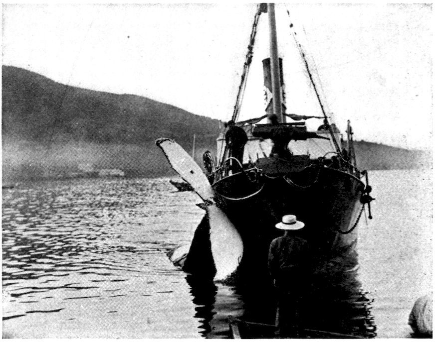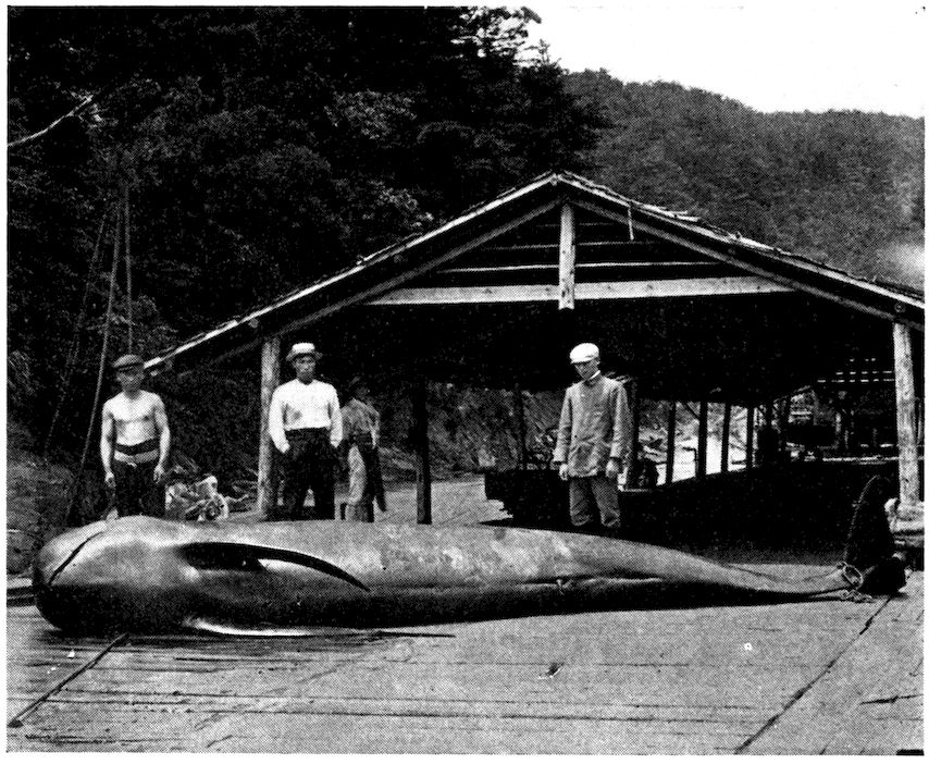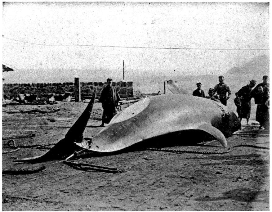The flesh of the humpback is most highly esteemed for food by the Japanese and this species was consequently very ardently pursued. Although most abundant of all a few years ago, humpbacks are now so rare that only twenty-five or thirty are taken yearly in all Japan. The blue whales are disappearing almost as rapidly and it will not be long before the Japanese will have to depend entirely upon the finback gray, and sei whales.