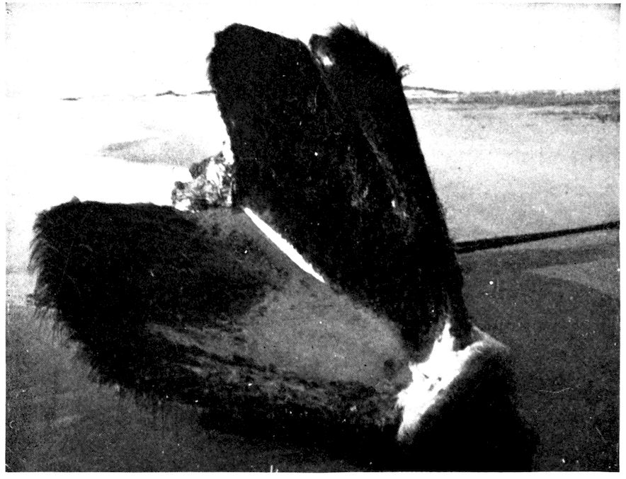 Accompanying this change of bodily shape was the elimination of all unnecessary structures which offered resistance, and the whale’s smooth, soft, hairless skin was one of the results. But the hair of a land mammal acts as a non-conductor, preventing the heat of the blood from being absorbed by the air, and as the whale’s body became naked it was necessary to blanket it with some other protective covering; thus the layer of fat or blubber developed between the skin and the flesh. Fish and amphibians do not need a warm 319covering because their blood is cold and changes with the temperature of the medium in which they live.