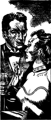 "Stick around," he told her with a grin. "Females are strictly nom de something-or-other in there at present. I'll be out directly."