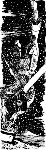 Three hundred men entered twenty-five ships, and the spaceport was cleared. Radio messages filled the ether, as the ships were checked before take-off. Then as the clamoring of the radio died, a more powerful transmitter in the flight commander's ship gave the order to lift.
