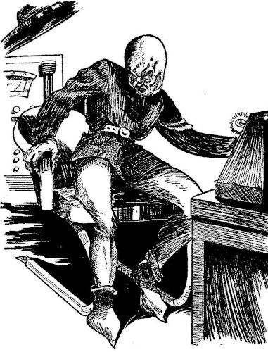 And the Loard-vogh stared at the machine with horror on their faces. There was sheer and utter horror there, but they could not move away, nor could they speak. They began to writhe a bit, as something in their mental attitude caused the onset of physical pain, and the writhing grew more violent.