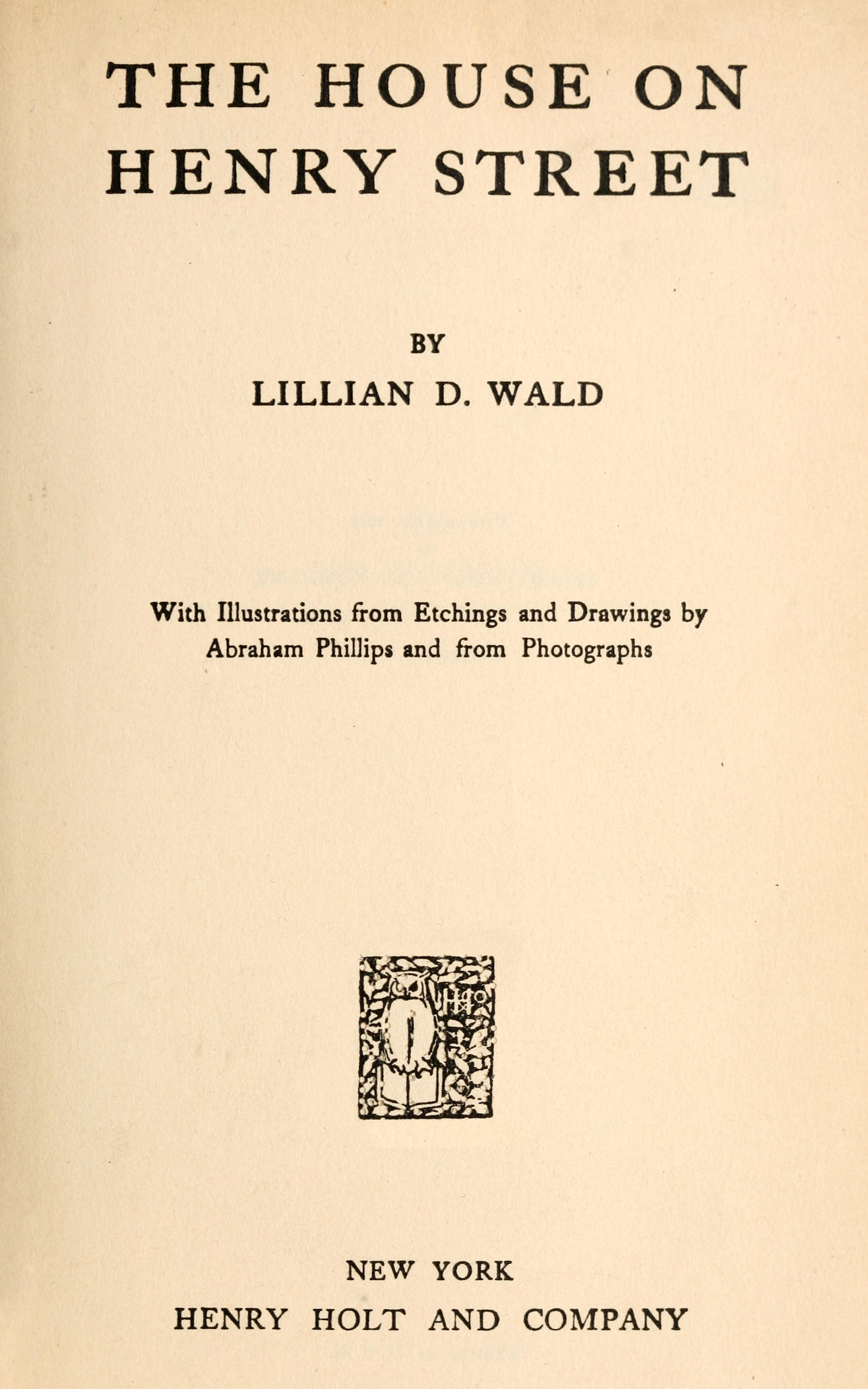 I cannot acknowledge by name the many individuals who, by gift of money and through understanding and confidence, through work and thought and sharing of the burdens, have helped to build the House on Henry Street. These colleagues have come all through the years that have followed since the little girl led me to her rear tenement home. Though we are working together as comrades for a common cause, I cannot resist this opportunity to express my profound personal gratitude for the precious gifts that have been so abundantly given. The first friends who gave confidence and support to an unknown and unexperimented venture have remained staunch and loyal builders of the House. And the younger generation with their gifts have developed the plans of the House and have found inspiration while they have given it.