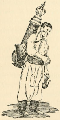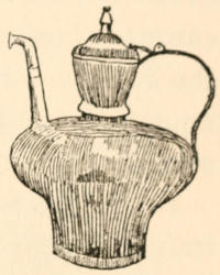 We learned the most efficient use of the fire-escape and felt many times blessed because of our easy access to the roof. We also learned the infinite uses to which stairs can be put. Later we achieved “local color” in our rooms by the addition of interesting pieces of brass and copper purchased from a man on Allen Street whom we and several others had “discovered.”[13] His little dark shop under the elevated railway was fitfully illuminated by the glowing forge. On our first visit the proprietor emerged from a still darker inner room with prayer-shawl and phylactery. He became one of our pleasant acquaintances and lost no occasion of acknowledging what he considered his debt to the appreciative customers who had helped to make him and his wares known to a wider circle than that of the neighborhood.