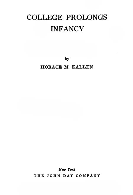 The Project Gutenberg eBook of College prolongs infancy, by Horace M. Kallen