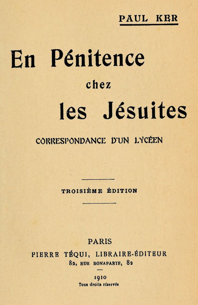 Tu as bien entendu : CHEZ LES JÉSUITES. En pénitence, naturellement.