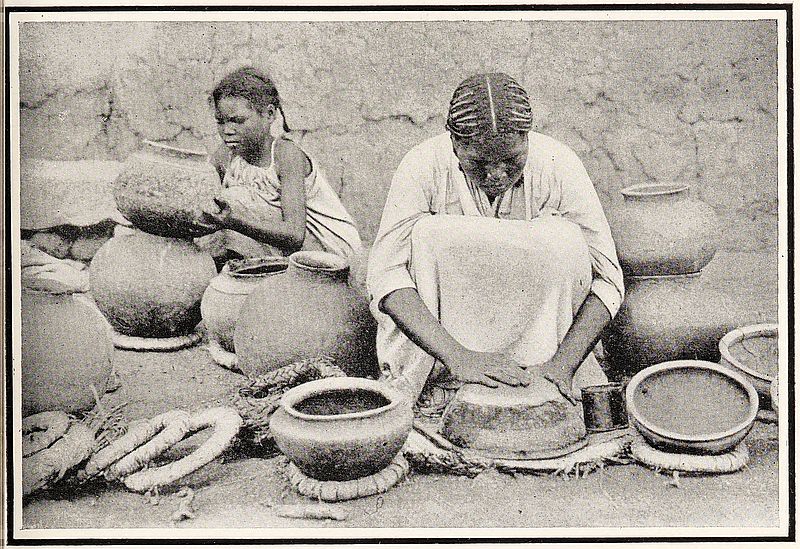 The stone is levered into position closing the opening. A deep fosse or ditch surrounding the village completes its fortification. The man in front is carrying two packages secured to a pole in the usual manner of the country