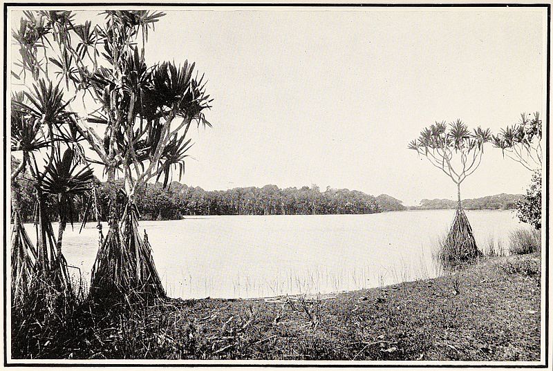 The route continued to be very easy travelling, with gentle ascents and one long one, following generally river valleys; and in the afternoon along a river bank for some distance, with pretty scenery of pandanus, adàbo, dracæna and other trees growing in clumps. This last-named tree, called hàsina by the Malagasy, is believed to be a favourite with the Vazìmba, the supposed aboriginal inhabitants of the island, and was consequently planted where their graves are and where their spirits are thought to dwell in order to secure their good will. The leaves, which are sword-shaped, grow in large clusters, so that the tree makes a beautiful variety amongst other foliage.
