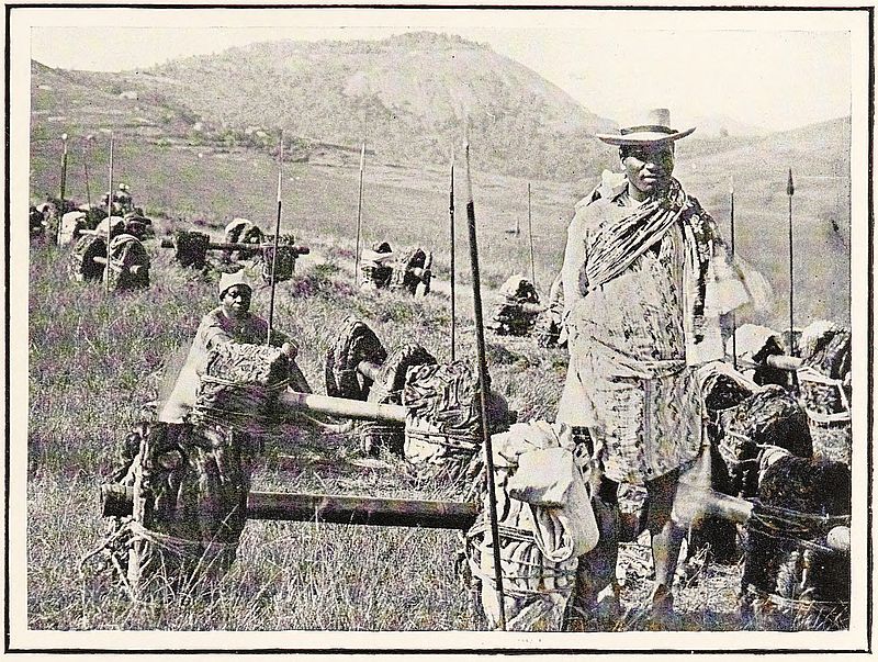 On Monday morning we fairly started on our journey away from mission stations and Europeans. Two hours’ ride brought us to a large market where hundreds of people were assembled. We were set down and, before we knew what our men were about, were left almost without a bearer, it being too great a temptation for our fellows not to go into the thick of a market; and it was some little time before we could get hold of them to carry us into the village near the place. All this day’s journey was up a long wide valley enclosed by lines of hills, which gradually approached as we proceeded; and our evening halt was in a village covered with a layer of finely powdered cow-dung, although the village chapel, our usual inn on such journeys, provided a fairly comfortable resting-place for the night.