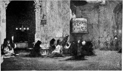 It may be said of all Mr. Webster’s etchings—and perhaps there could be no higher praise—that each possesses the faculty of provoking fresh interest. That is certainly the case with four of his most recent plates. One is an interior of St. Saturnin, Toulouse, majestic and stately, full of suggestive mystery in the religious light that falls with soft touch upon the pillars, throws into relief the dark masses of the choir-stalls, and strives to penetrate the dim recesses of the vaulted roof. St. Saturnin will be among the rariora of the collector, for the plate unfortunately broke when twelve proofs only had been printed.