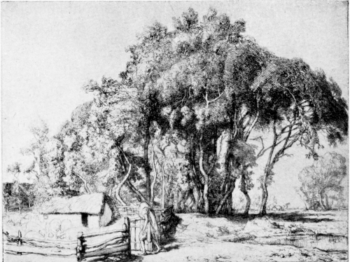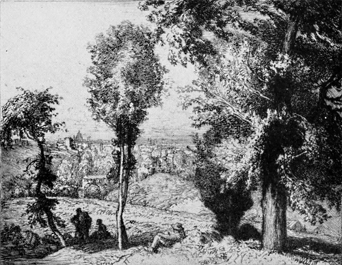 Among the new plates are four that deal with street scenes in the Alt Stadt of Frankfort. Der Langer Franz, a view of the Rathaus tower that took its nickname from a tall burgomaster of the town, is the smallest of all, but a little gem, brilliant with light and rich in the mystery of shadow. Then there are the Street of the Three Kings, the Bendergasse, and Sixteenth-century Houses, all of them felicitous in charm of theme, in play of light and shade, and in the suggestion of life given by the animated figures. There are admirable figures again in An Old Court, one of the plates that the collector of future days will most desire to possess. There is less in it of obvious labor than in the street scenes; the etcher has overcome a natural fear of blank spaces; and his reticence and more summary execution have lent to this plate much of the unconscious and unpremeditated charm that is one of the finest qualities which an etching can possess.